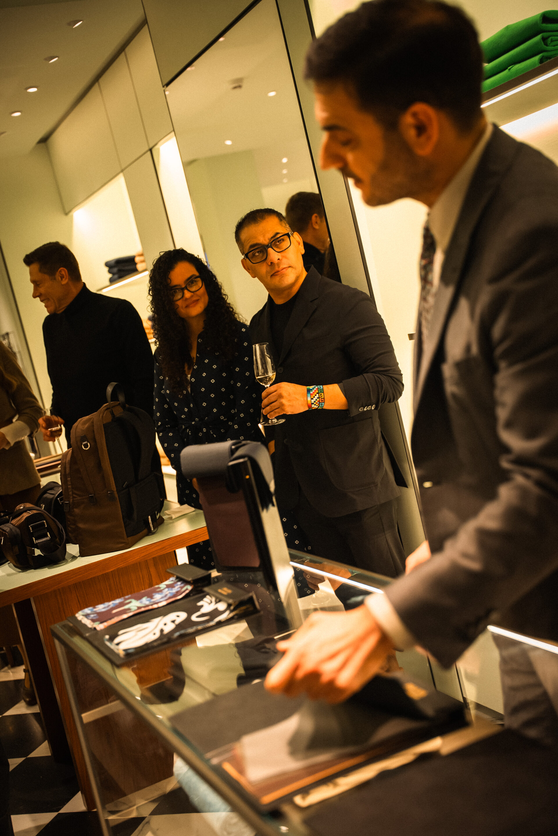 La velada reunió a invitados especiales y apasionados de la moda, quienes fueron recibidos por Alejandro Medrano Director de Fashion Week Magazine , anfitrión del encuentro. En un ambiente elegante y cercano, los asistentes pudieron descubrir con mayor profundidad la esencia de la maison italiana, su dedicación al detalle y su constante búsqueda de la excelencia en el diseño masculino.