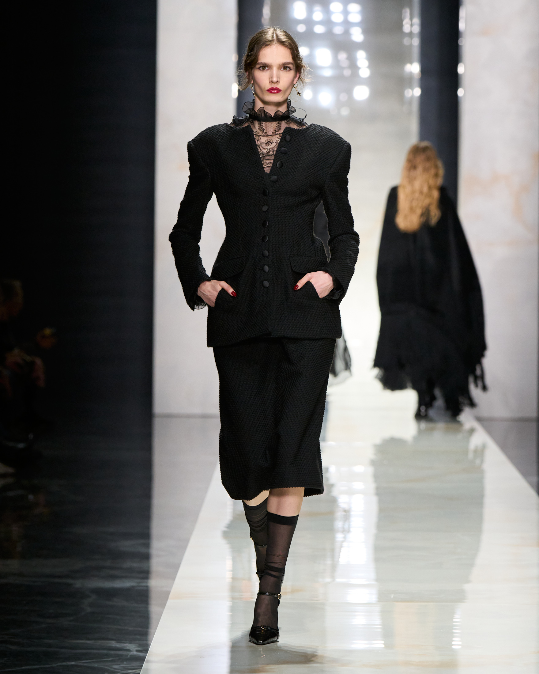 Un lenguaje construido sobre raíces que siguen vivas — Sicilia como emoción, el negro como fuerza, el encaje como intimidad, la sastrería como autoridad. Una visión donde la feminidad y la masculinidad están en diálogo constante, donde el cuerpo no se oculta, sino que se afirma.