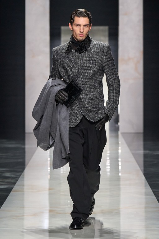 Más que un tema, la propuesta se manifiesta como una declaración de principios: la individualidad vuelve a ocupar el centro del guardarropa masculino. Cada hombre es concebido como un universo propio, compuesto por pasiones, recuerdos y tensiones internas. La pasarela se transforma así en una galería contemporánea de retratos vivos, donde cada look funciona como un autorretrato psicológico y sartorial.