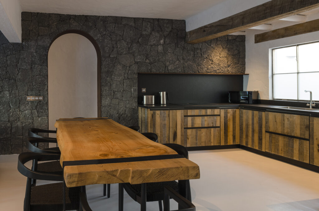 Homenajeando la arquitectura tradicional de la isla y tomando como inspiración el legado artístico del pintor y escultor César Manrique, Kamezí ha diseñado este enclave que respeta la belleza natural de la isla, con materiales naturales, espacios sostenibles, jardines privados con vistas infinitas al Atlántico y a los pies del volcán Montaña Roja. El proyecto arquitectónico del restaurante es una reinterpretación innovadora de la arquitectura tradicional lanzaroteña, destacando el diseño de su terraza frente al mar, que se ha convertido en nuevo icono visual de la isla.
