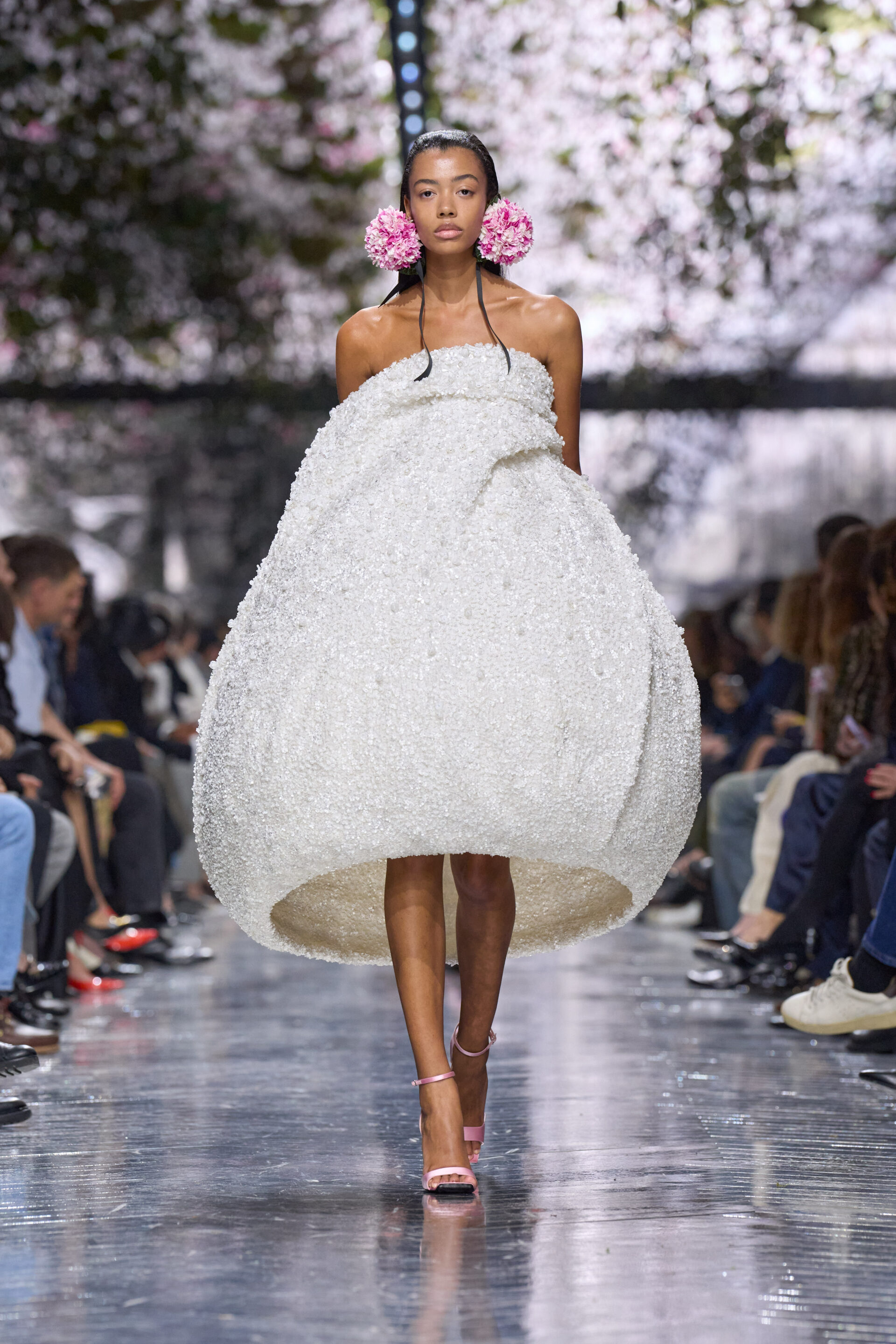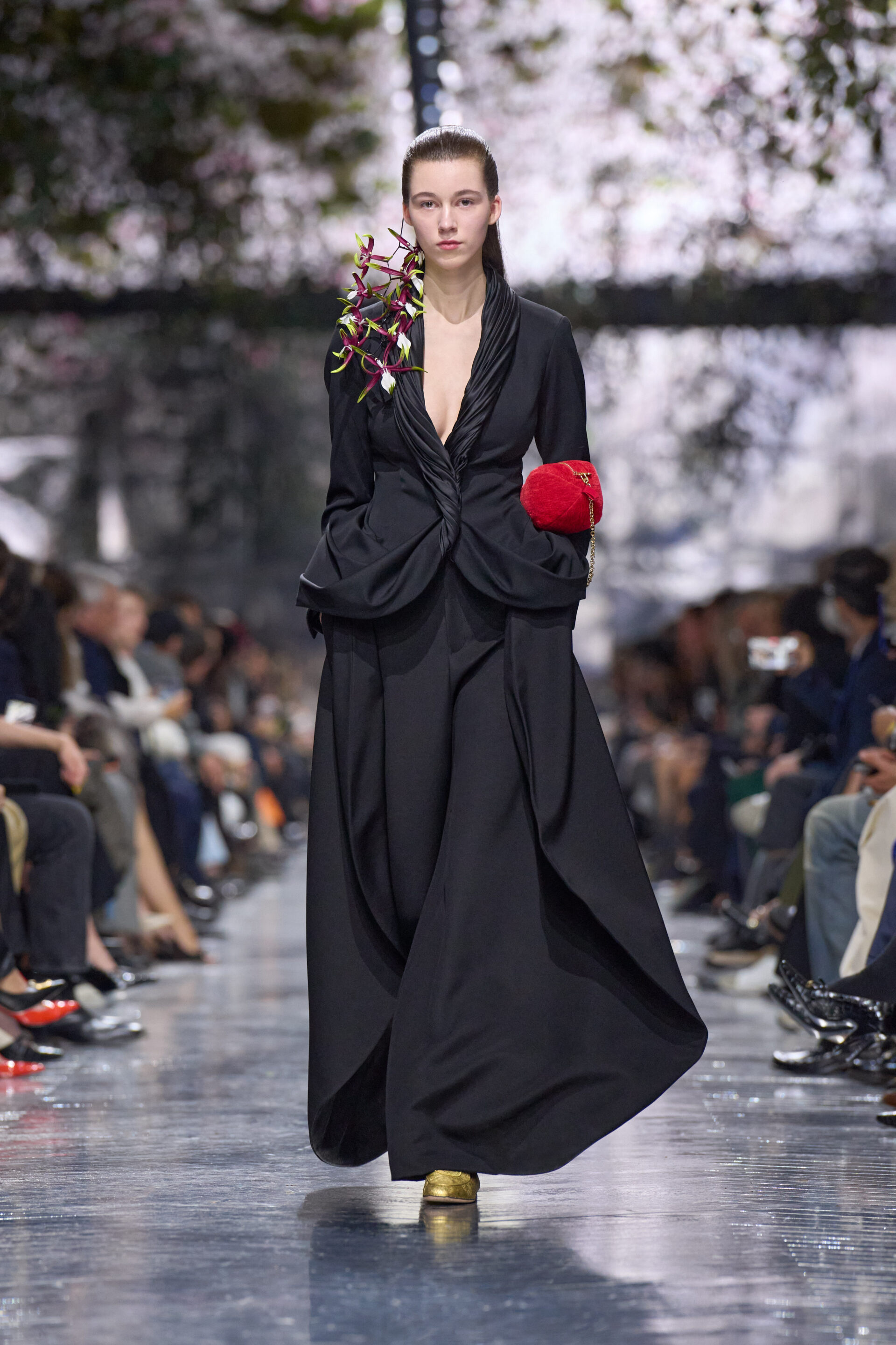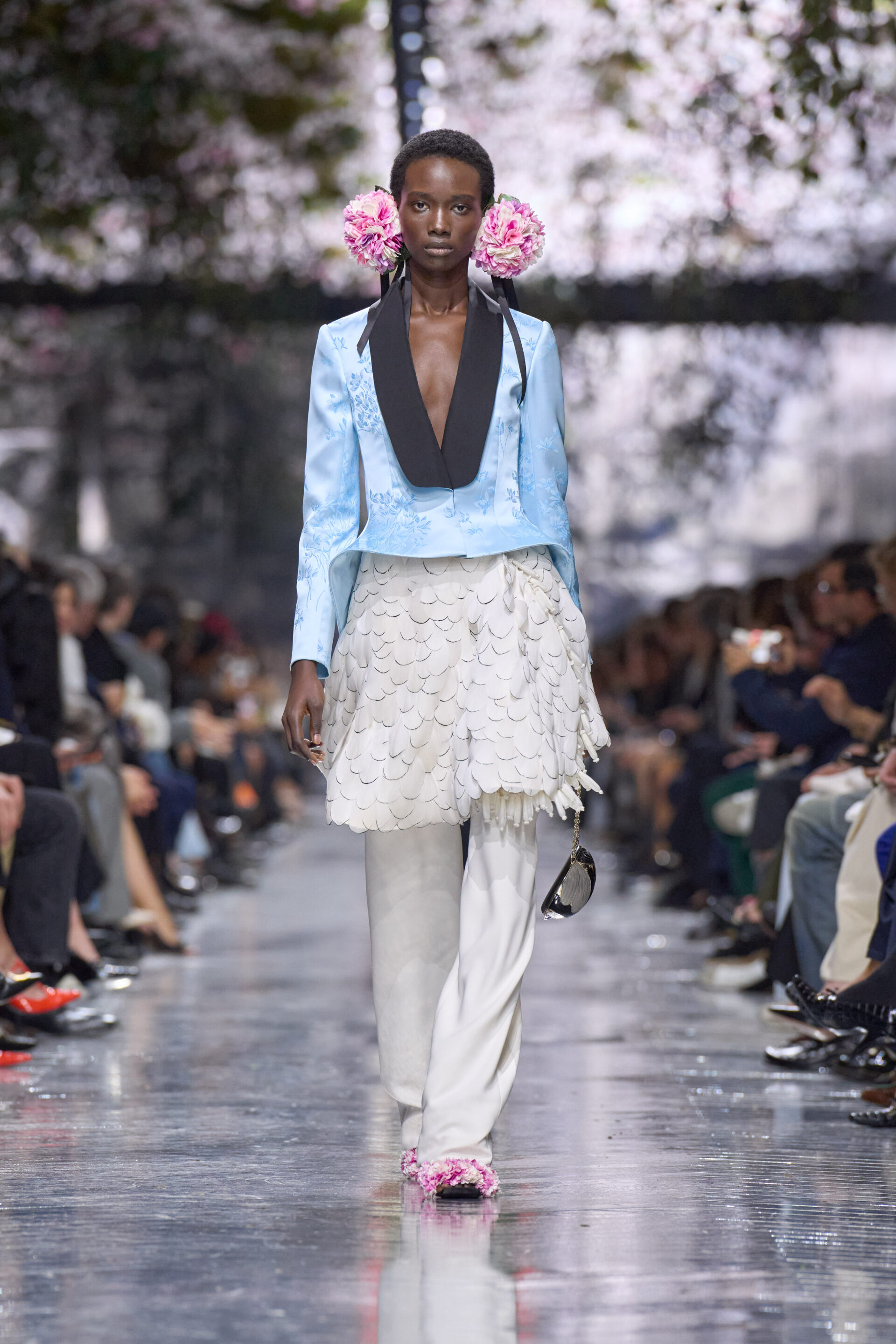 La propuesta de Anderson se enraíza en la conexión entre tradición y modernidad. Inspirado tanto en los icónicos archivos de la maison como en la obra literaria y la cerámica contemporánea, cada pieza trasciende la simple moda para convertirse en escultura portátil. Siluetas fluidas en tules etéreos se combinan con estructuras arquitectónicas —una fusión entre lo clásico y lo experimental que desafía los cánones de la alta costura.