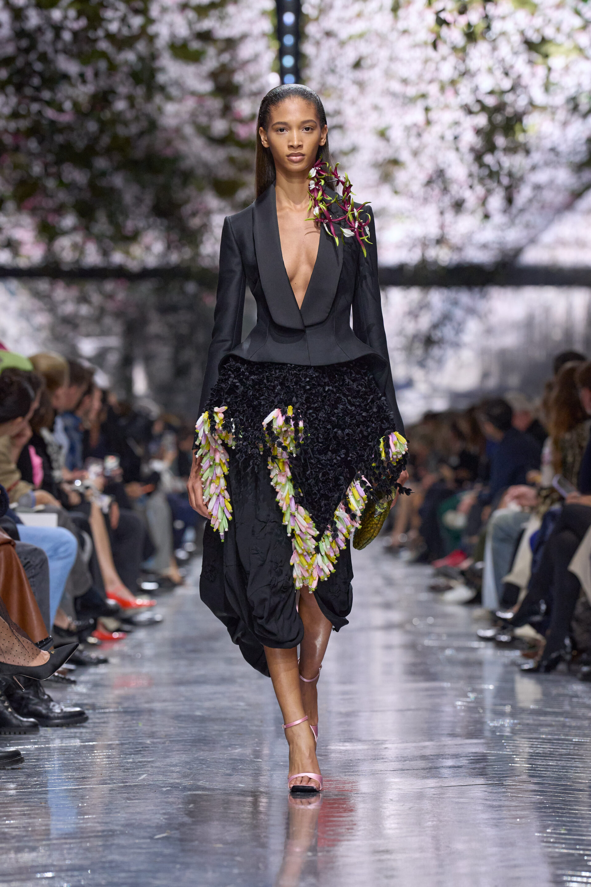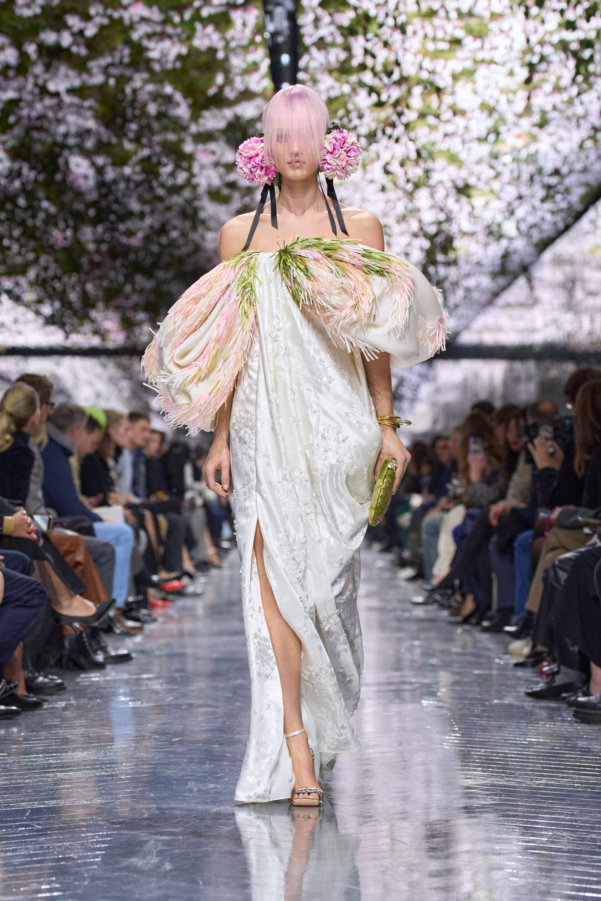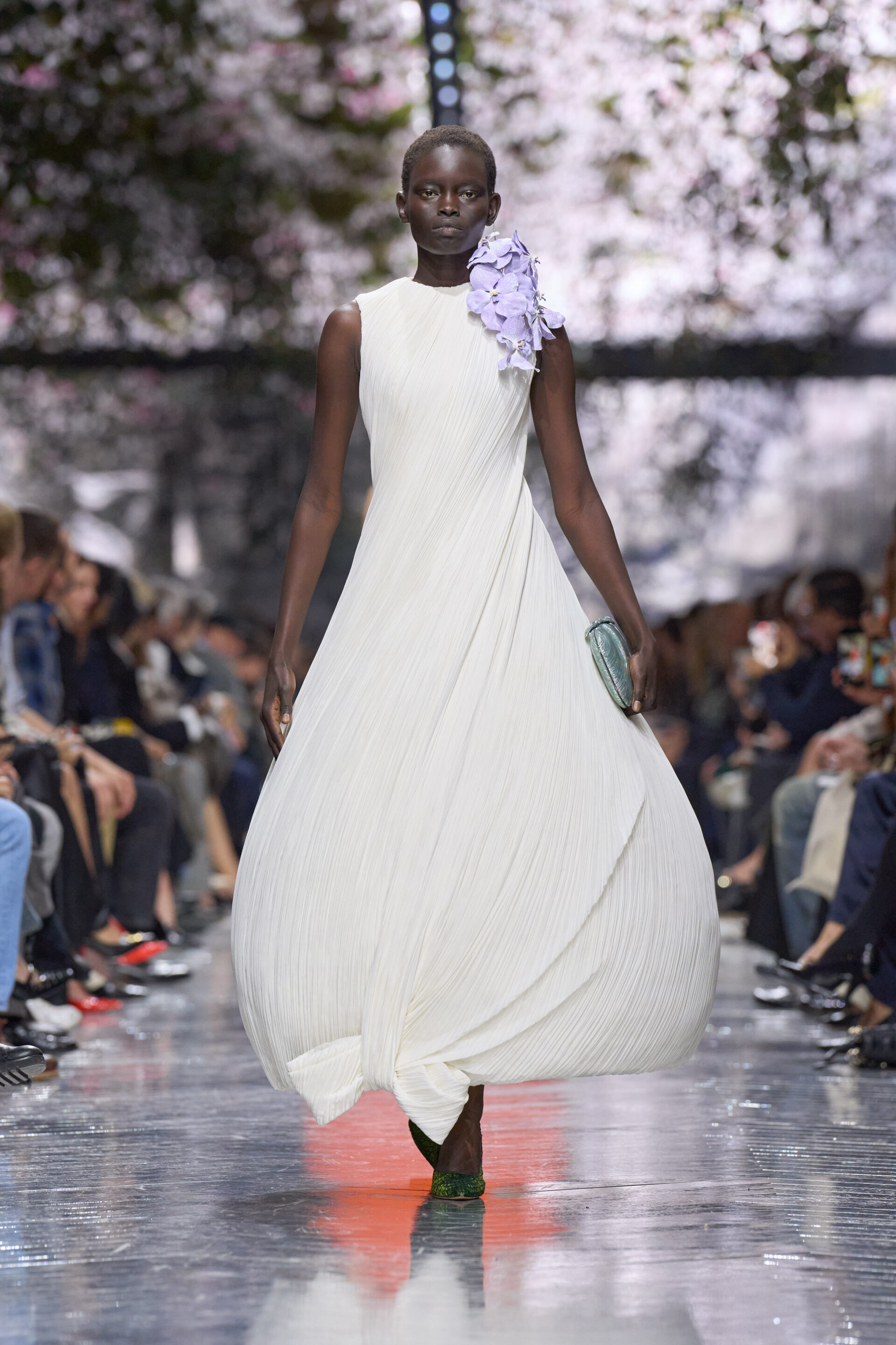 La propuesta de Anderson se enraíza en la conexión entre tradición y modernidad. Inspirado tanto en los icónicos archivos de la maison como en la obra literaria y la cerámica contemporánea, cada pieza trasciende la simple moda para convertirse en escultura portátil. Siluetas fluidas en tules etéreos se combinan con estructuras arquitectónicas —una fusión entre lo clásico y lo experimental que desafía los cánones de la alta costura.